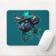 Cowboy Bull With Turquoise Hat and Patterned Scarf Mouse Mat