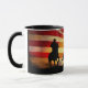 Cowboy steer roping with a big American Flag in the background. Super cool country western patriotic cowboy coffee mug!