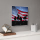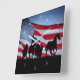 American cowboy rounding up a herd of wild horses. A patriotic country western rodeo clock.