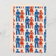 A bold, symmetrical pattern featuring stylized cowboys in blue and cowgirls in red, arranged in alternating rows and columns. Each figure is rendered with vintage flair—wide-brim hats, boots, holsters, and flared skirts—evoking the spirit of mid-century Americana. The design’s rhythmic repetition and strong color contrast create a dynamic visual cadence, celebrating Western iconography with editorial clarity and nostalgic charm.