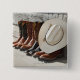 Cowboy hat on row of cowboy boots outside a log 15 cm square badge
