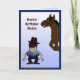 A graphic illustration of a cowboy and horse on a custom birthday card. The card has text templates for your personalisation.