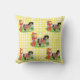 Square throw pillow with a cowboy kid with a rope and a horse on a yellow check background with red and white star border. The opposite side has the same design but the background does not include the border This design is also available on other items for baby.