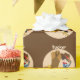 Adorable custom cowboy birthday party wrapping paper in brown and tan. Features a country boy leaning against a giant cowboy boot. Personalise this gift wrap with your child's name.