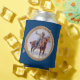 C.M. Russel cowboy on horse making a toast with a drink beer koozie