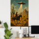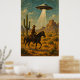 Cowboy On Horseback UFO Encounter Wall Art Poster