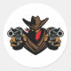 A cowboy outlaw with his guns out. This design looks really effective on these Stickers