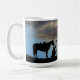 Cowboy in prayer with his horse and a stunning rainbow coffee mug