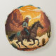 Cowboy Riding Horse at Sunset Round Cushion