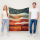 Cowboy Riding into Flag Sunset Fleece Blanket