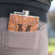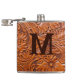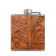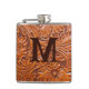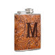 Rustic western country pattern tooled leather print monogrammed flask. Cowboy wedding favours.
