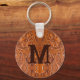 Rustic western country pattern tooled leather print monogrammed keychain . Cowboy wedding favours.
