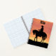 A cowboy rides his horse, silhouetted against a bright sunset sky, on this beautiful spiral notebook for a western horse enthusiast.