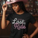 Celebrate the bride's last ride with this western cowgirl themed bachelorette party shirt. Featuring cool rope text over a pink and black color palette, it's a fun choice for a girl's night out or bachelorette weekend. Personalize it with the bride's name for a custom keepsake!