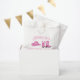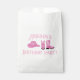 The favour bags feature custom text along with a pink hat and boots.
