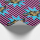 Cowgirl on running horse print on pink and black stripe gift wrapping paper.