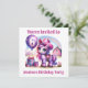 An adorable cowgirl pony is celebrating her 6th birthday with a purple balloon with the number 6 and a pink cowgirl hat on a farm. Personalise with your child's name.