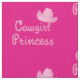 Cowgirl Princess text with pink cowboy hat Background can be changed to any colour. Matching 1 1/2 " and 3" satin or grosgrain ribbon is available.
