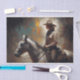 Like a living brushstroke, Cowgirl riding white horse sunset decoupage by Decoupage_Boutique blends movement and mood into a single breathtaking moment. A confident rider in a painted shirt rides into the golden haze, flanked by burnt orange, teal, and smokey earth tones that melt into the horizon. The horse's soft coat and steady gaze balance the vivid emotion of the backdrop, offering calm and command in equal measure.
