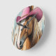 Cowgirl Time: Hot Pink Hat Horse Rustic Charm Round Clock