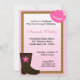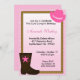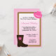 Cute cowgirl birthday invitation with a pink bandanna background, a cowgirl boot with a pink star and swirls, and a pink cowgirl hat. Design can be easily customised with your party details.