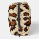 This cut and sew toiletry bag is shown in a rustic cowhide print with black strap.
