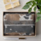 The cowhide leather details are simulated in the artwork. No actual cowhide or leather will be used in the making of this product.