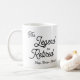 Add 8 photos and create a funny custom collage grid coffee mug with a trendy heart and a chic, thoughtful quote, "the legend has retired" script for your coworker on retirement.