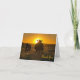 This small thank you note card has an image of a cow and two calves standing behind a barbed wire fence on the Alberta prairies with the setting sun glowing behind the cow silhouettes. The front side says, "Thank You" in sunshine yellow lettering and there is brown customisable text on the inside that you can change to say whatever you want.