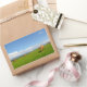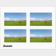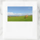 Rectangular photo sticker with cows grazing in a meadow in a agricultural scene near the western coast of the green island Ireland.
