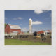 Cows in front of a red barn and silo on a farm postcard