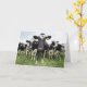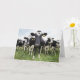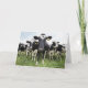 Cows standing in a row looking at camera card