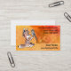 A cartoon coyote pup with a magpie friend, on a fiery orange business card design.