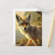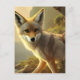 A postcard for wildlife lovers, featuring AI generated digital painting of beautiful coyote pup in a mountain stream.