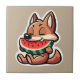 Funny image of a Coyote eating a watermelon. The border can be removed.