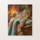 Cozy Cat Sleeping in Basket by Warm Fireplace Jigsaw Puzzle