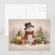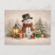 Cozy Christmas Snowman with Lantern and Gifts Holiday Postcard