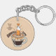 Cozy Coffee and Funny Cat Theme Rustic Custom Key Ring