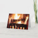 Cozy Fire Brick Fireplace Burning Logs Flames Holiday Card