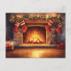 Cozy Fireplace with Hanging Stockings Holiday Postcard