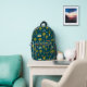 A whimsical forest-themed pattern featuring trees, foxes, rabbits, a deer, and a cozy cabin, set against a deep teal background. Perfect for nature lovers.