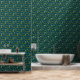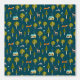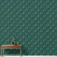 A whimsical forest-themed pattern featuring trees, foxes, rabbits, a deer, and a cozy cabin, set against a deep teal background. Perfect for nature lovers.