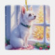 Cozy Maltese by Snowy Window Christmas Dog Art Ceramic Ornament