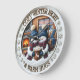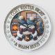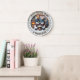 This heartwarming clock features two smiling snowmen wearing plaid scarves and pom-pom hats, cozying up to a mug of hot cocoa by a roaring fireplace. The scene is framed by a window looking out onto a snowy night, and the text reads "COZY WINTER NIGHT & WARM HUGS." The design may look real due to the high detail and three-dimensional texture in the artwork.