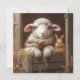 Cozy Sheep and Rabbit in Barn with Flowers Holiday Card