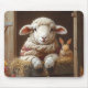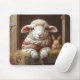 Cozy Sheep and Rabbit in Barn with Flowers Mouse Mat