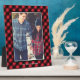 Display a special family photo in our bold and trendy red buffalo plaid photo frame print design personalized with your own photo and family name.