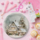 "Featuring a charming, storybook-style Christmas house nestled in a snowy scene, these plates capture the warmth and whimsy of the season. The soft, cozy design adds a playful yet elegant touch to any festive gathering, making them perfect for family dinners, classroom parties, office celebrations, or holiday events. The snowy setting and whimsical details create a cozy winter atmosphere that complements a variety of holiday décor. Pair with matching napkins, cups, and other tableware to create a fully coordinated, festive table."