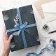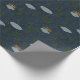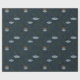Wrap your gifts in a calm and cozy winter forest pattern featuring pine trees, frozen lakes, and a small wooden bridge set against a deep night blue background.