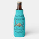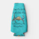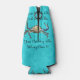 Featured on this stubby can cooler holder on a aqua blue background is a blue swimmer crab with a funny catching crabs logo.